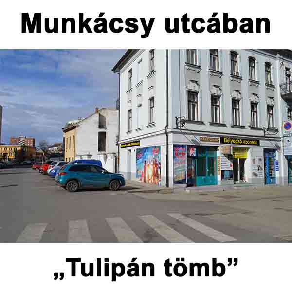 A K&H Bank épület tömbje, a parkoló felől a második üzlet.